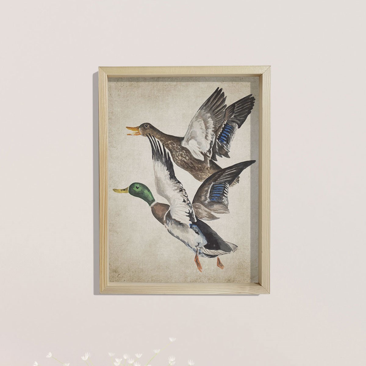 Doğal Çam Çerçeveli Duvar Tablosu Antik Ördek